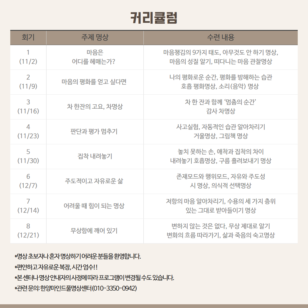 *관련 문의: 한양마인드풀명상센터(010-3350-0942)