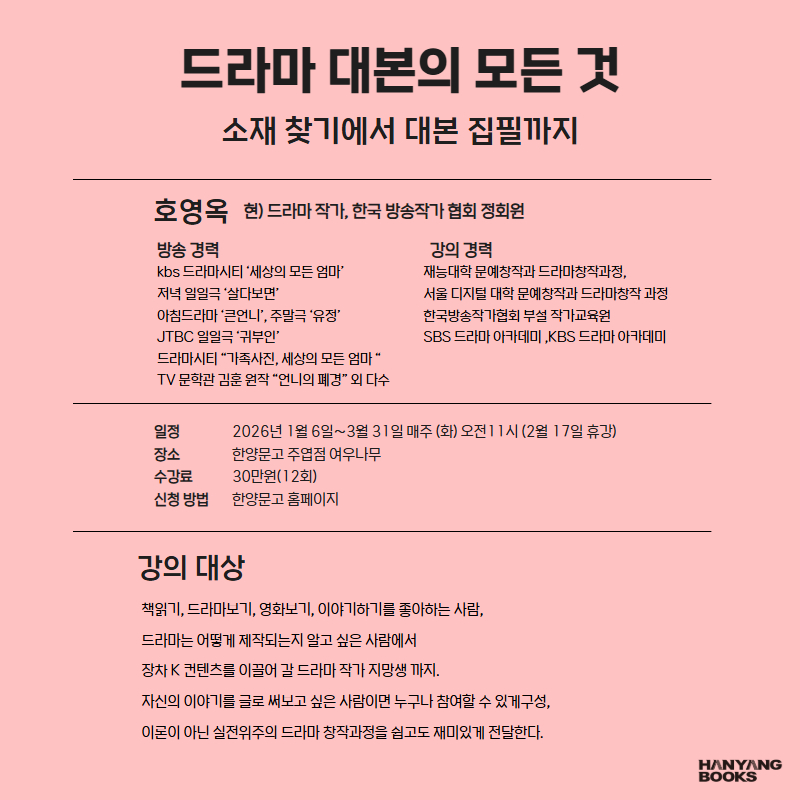 드라마 대본의 모든 것- 소재 찾기에서 대본 집필까지(1월6일 개강)