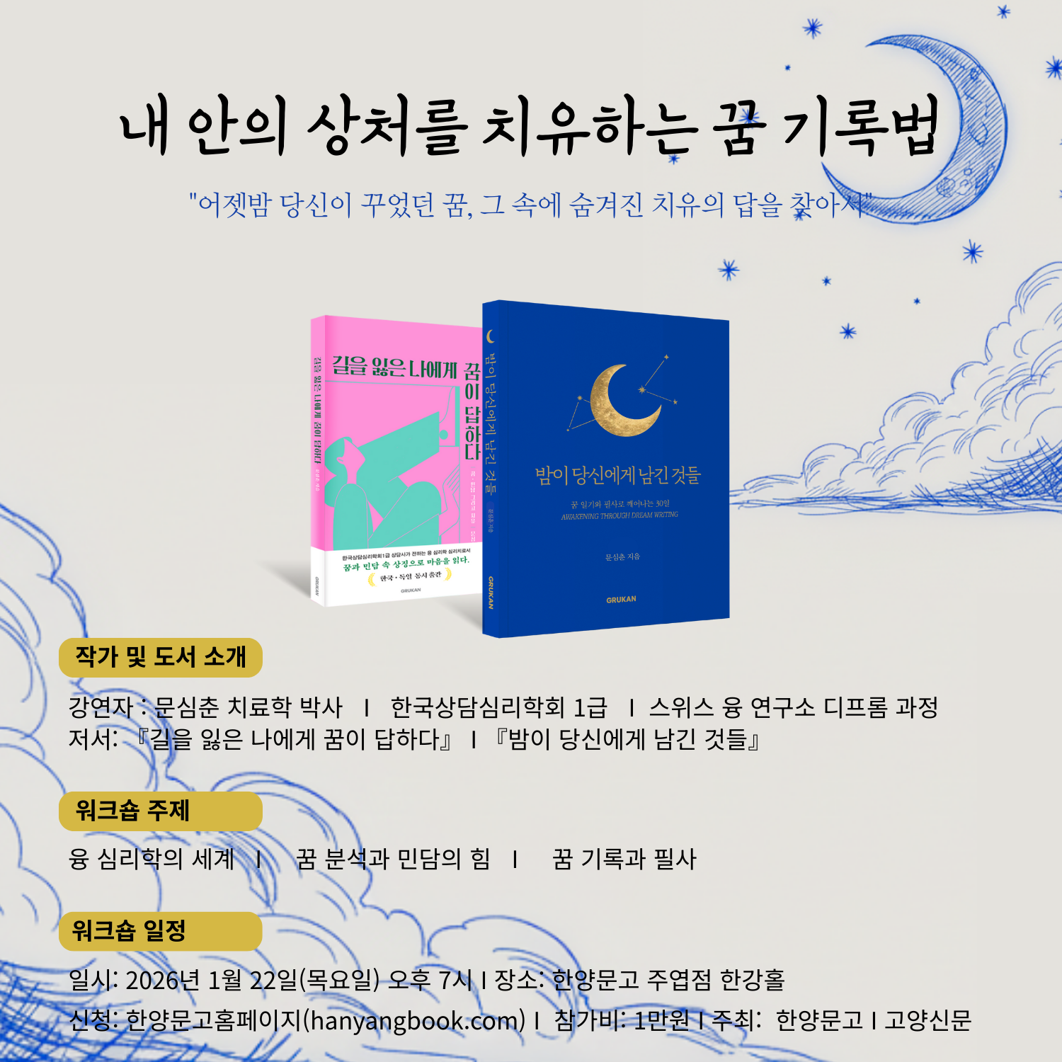 저자의 두 저서 『길을 잃은 나에게 꿈이 답하다』(2025) 와 『밤이 당신에게 남긴 것들: 30일 꿈 일기 워크북』(2026)을 바탕으로, 꿈 분석을 통한 자기 이해와 심리적 성장의 과정을 체계적으로 안내합니다.