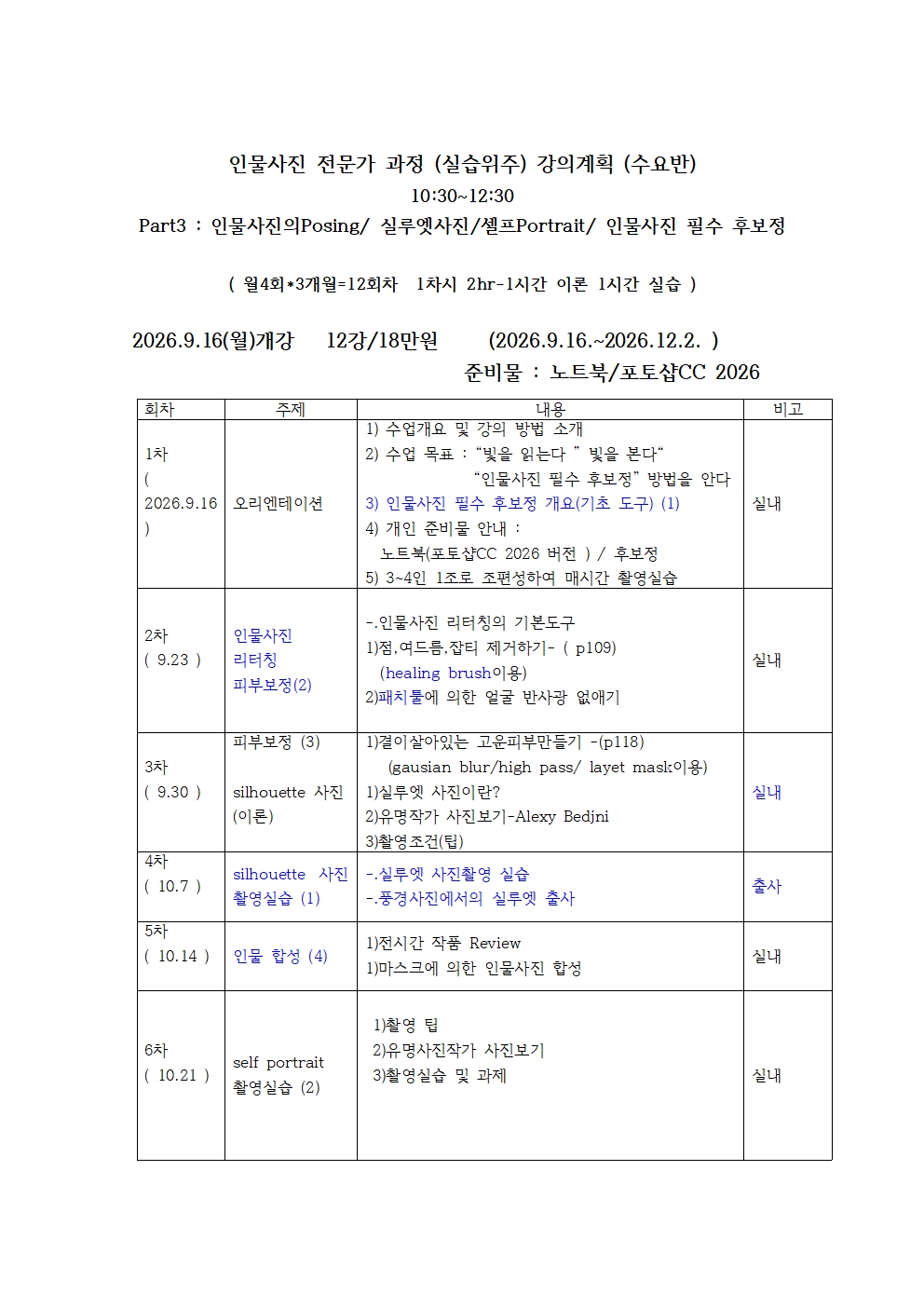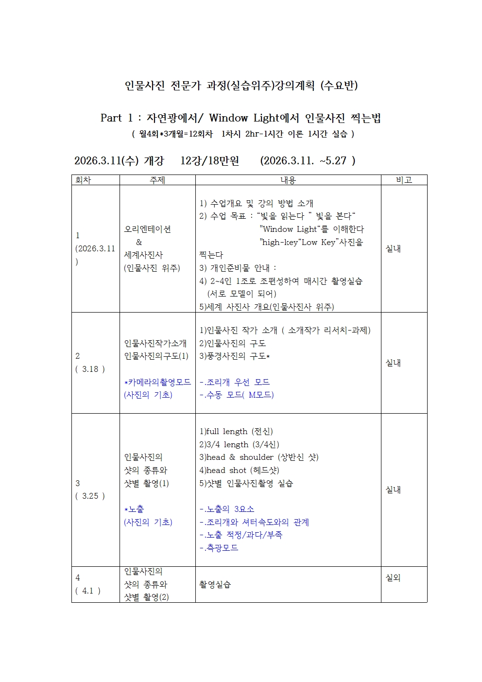 26년3월11일(수) 오전 10시30분 개강