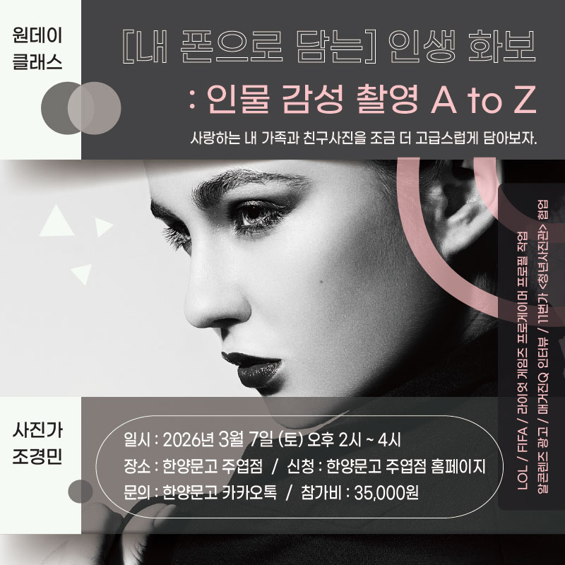 유료강좌-상세페이지필독 [원데이클래스] 내 폰으로 담는 인생 화보(3월7일)
